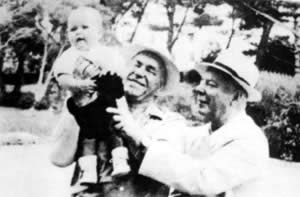 1956年伏罗布洛夫和朱可夫在一起,高举外孙女的朱可夫多么自豪。