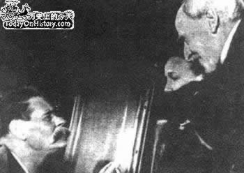 1935年,高尔基在莫斯科火车站送别法国作家罗曼·罗兰