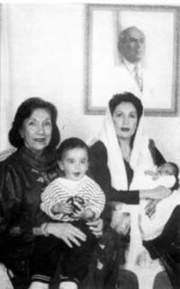 贝·布托和母亲及一双儿女,身后是阿里·布托总理的遗像