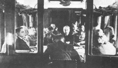 车内的会谈。法国代表团表情沉重地听着德国代表团所提出的极为苛刻的休战条件