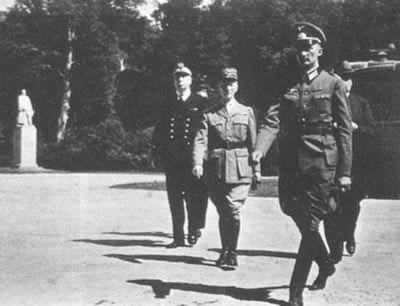 法德《贡比涅停战协定》签字后,法军将领恩特齐热由一名德国军官引导离开谈判现场