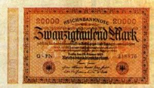 马克的价值下跌得非常惊人。仅在3个星期内,就失去了一半的价格。月初,1美元以74500马克买入。但是这天,1美元的价值是13.6万马克。