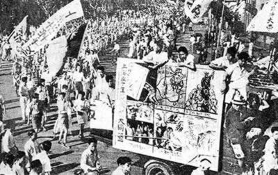 23日五万多上海群众响应大学生号召,举行反战大游行1946年6月23日,上海5万多群众举行反对内战的示威游行,把全国反内战运动推向高潮。政协会议后,全国各地纷纷成立反内战团体,呼吁和平。6月上旬,仅上海就相继成