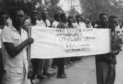 示威者手持的标语上写首:『我们要求天主教传教士离开赤道!』等