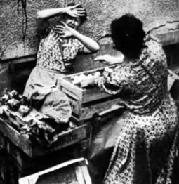 德国科隆,愤怒的德国主妇为抗议物价高涨,把鸡蛋打向一个小贩的头部