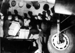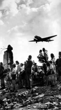 西方大国向柏林市中心运送供应物资 1948年6月25日,苏联指挥官加紧了对柏林同盟国占领区的封锁,但是西方强国说他们决心空运足够的援救物资,使人们免于挨饿,这须付出很大的努力。现在的食物只能维持一个月,同盟国估计他们每天需要空运2500吨食物来满足西部地区的需要。目前每天只有6吨食物运往柏林。