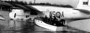 一架水上飞机正停在柏林湖泊水上,准备把一批儿童送到安全和供应充足的避难所汉堡去。