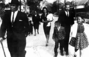 1955年12月,蒙哥马利节警察当局以违反公共汽车座位隔离条令为由,逮捕了黑人妇女罗莎·帕克斯。金遂同几位黑人积极分子组织起『蒙哥马利市政改进协会』,号召全市近5万名黑人对公共法与公司进行长达1年的抵制,迫使法院判决取消地方运输工具上的座位隔离。这是美国南部黑人第一次以自己的力量取得斗争胜利,从而揭开了持续10余年的民权运动的序幕,也使金博士锻炼成民权运动的领袖。