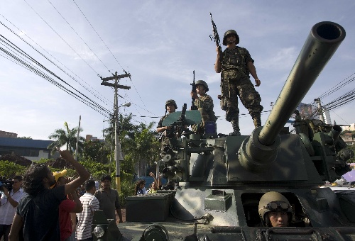 在洪都拉斯首都特古西加尔巴,士兵包围总统府。