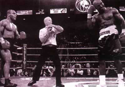 1997年6月28日在拉斯维加斯举行的WBA重量拳手争霸战出现惊人的一幕,当比赛进行到第三回合时,挑战者泰森竟猛然向卫冕霍利菲尔德的耳朵狠咬一口。