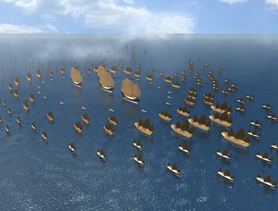 郑和宝船3D模型图,在整个动画片中,共有20多种宝船模型。