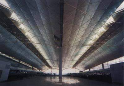 耗资1550亿港币的香港国际机场总面积达1248公顷,在弹丸之地的香港是个奇迹;单是客运大楼就占51万平方米,相当于86个足球场,是世界最大的建筑物之一。主楼的设计者霍士达爵士(Norman Forster,也是香港汇丰银行总厦的设计者)说,他的灵感来自香港人的精神。