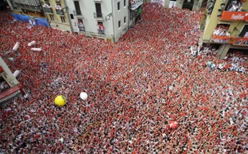在节日的几天里,每天都有6头凶悍的公牛追逐着数百名壮汉,沿着『奔牛之路』穿城而过,直奔斗牛场,场面极其惊心动魄。位于潘普洛纳市旧城区的『奔牛之路』其实是一条狭窄的石板街,全长848.6米。奔牛时,上万名奔牛爱好者挤满了街道,重约500公斤的公牛从牛棚冲出后,在4分钟内以24公里的时速在杂乱的人群中狂奔,时常人仰牛翻,险象丛生,最后以公牛被引进斗牛场而大功告成。奔牛节期间,每年都有人受伤,甚至也发生过死亡事件。据统计,从1924年到2002年,共有14人被牛顶死,200多人被牛顶伤。即使如此,来自世界各地的冒险爱好者还是云集潘普洛纳这个小城,在为期9天的人与牛之间的危险游戏中尽情享受欢乐与刺激。节日期间,来自世界各地的游客大量涌入,潘普洛纳这座小城的人口短期内迅速从25万人增加到150万人。