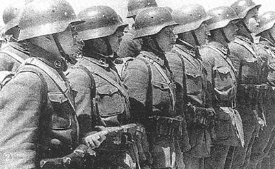中国士兵脚着草鞋,乘飞机开赴前线1945年7月7日,国民政府军事委员会宣布:战局现已转守为攻。公布八年抗战截止现今,计毙伤及俘虏日军250余万人;中国军队阵亡130余万人,负伤170余千万人。7月12日,中国伞兵首次