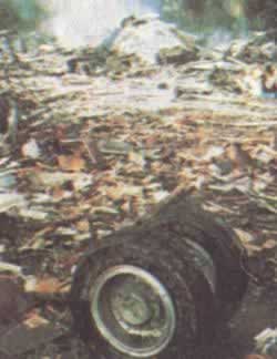 轮胎--事故现场唯一的完整残骸1982年7月8日,一架泛美世界航空公司的民航班机在新奥尔良附近的一个居民区坠毁。机内145人全部死亡,另有至少4名地面人员死亡。这架波音747客机下午4时11分从新奥尔良国际机场起飞。起