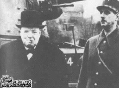 1941年3月,英国首相丘吉尔陪同戴高乐将军检阅英军坦克部队