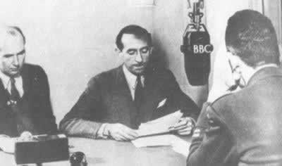 在BBC电台的播音室里,广播员用法语播送新闻,同时用密码将有关指示发给地下工作者