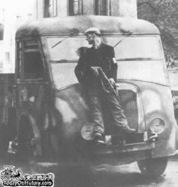 一名法国抵抗运动战士以卡车作掩体,准备袭击德军士兵