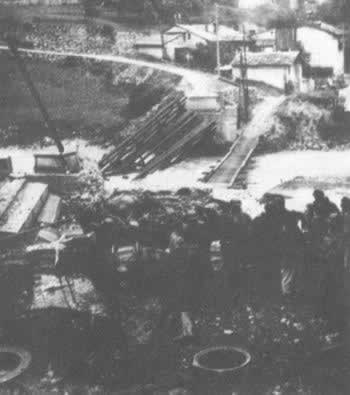 抵抗运动战士将桥梁拆毁,以阻止德军进攻
