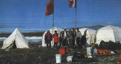 在北极第一次升起中国的五星红旗旗下站立的是两名中国科研工作者根据中国-加拿大恐龙合作考察计划,董枝明和余超两同志于1986年与5位加拿大科学家同赴加拿大北极地区考察25天,这是我国科学考察人员第一次进入北极地