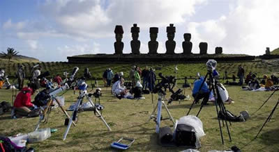 2010年7月11日,南太平洋发生350年不遇的日全食景观,整个过程持续了5分20秒。数千名天文爱好者聚集在复活岛,借助各种工具见证了日全食全过程。