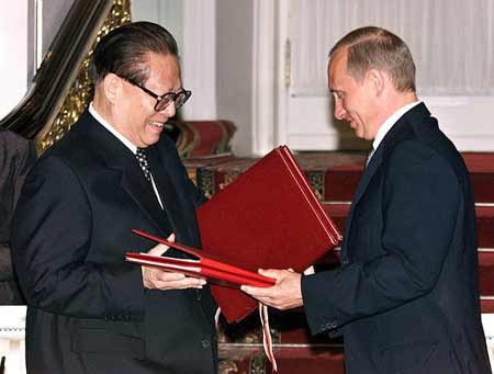 2001年7月16日,中国国家主席江泽民和俄罗斯总统普京在莫斯科签署了《中华人民共和国和俄罗斯联邦睦邻友好合作条约》。
