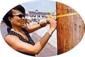 肯家大宅,一名女子在树上系黄丝带,盼望肯尼迪平安回家。