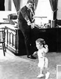 1岁半的小肯尼迪在父亲白宫椭圆形办公室学步