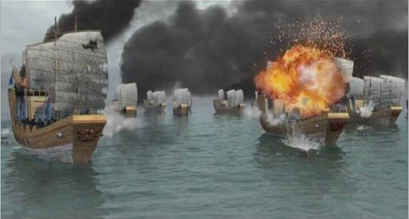 1683年7月16日,清朝水军和台湾郑氏水军在彭湖海面爆发激烈决战。1683年7月16日,清朝水军和台湾郑氏水军在彭湖海面爆发激烈决战。战斗打响后,施琅率领的清水军迅速利用有利的西南风向条件,以『五点梅花阵』战术,