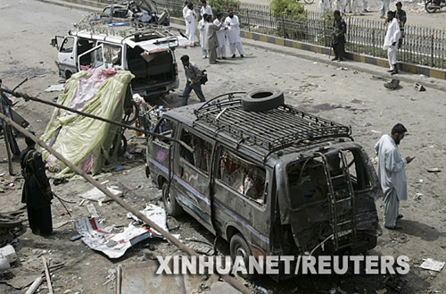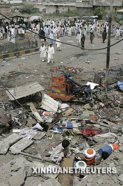 2007年7月19日,人们聚集在巴基斯坦西南部俾路支省胡布镇某汽车站附近发生炸弹爆炸的现场。这起路边炸弹袭击事件导致26人丧生,另有20余人受伤。另外,巴西北边境省亨古镇一所警察训练学校当天也遭到自杀式炸弹袭击