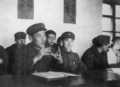 1973年辽宁考生张铁生(前左)在大学招生文化考试中交了白卷?1973年辽宁考生张铁生(前左)在大学招生文化考试中交了白卷,却在试卷背后写了一封为自己成绩低劣辩护的信。此人竟被江青等人称作『反对资产阶级教育路