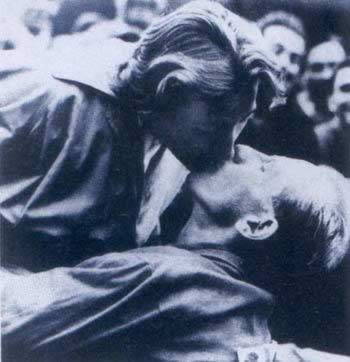在赫尔辛基奥运会上,扎托皮克祝贺爱妻夺得标枪冠军