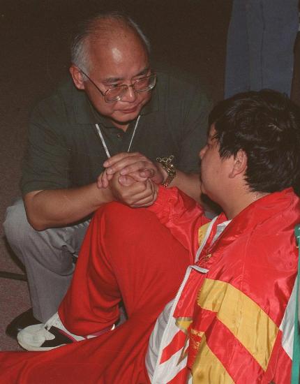 王义夫内耳道发炎引起头痛头晕,一段时间以来身体疲惫虚弱。抵达亚特兰大时,他是被担架抬下飞机的。这几天在奥运村中他也是边训练边治疗。