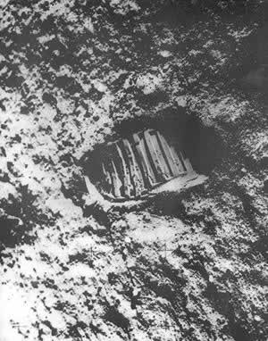 他们在离月球表面九点八英里处进入了一条低轨道,在一片可怕的满是高山和火山坑的月球荒野上飞行。这时,休斯顿的一部计算机开始在他们的仪表盘上闪光,向他们发出警报。现在已如此接近目的地,他们当然不能回头,于是他们就根据在休斯顿的一个青年指挥官员的指示向前飞去,阿姆斯特朗掌握着操纵器,『嗡嗡叫』奥德林不停大声读出仪器上显示出的航行速度和高度。他们在下降的最后时刻,遇到了一些麻烦。当阿姆斯特朗发现他们将落在广阔的不可接近的西火山坑(因处于他们的目标之西四英里处,故有此称)时,『鹰』舱月球之间的距离已不到五百英尺了。他向那火山坑外面飞去,但这计划外的延长旅程,意味着他快要用完燃料了;他必须立即作出决定,要么转向那边去,要么冒坠毁的危险。就在这一刹那,他前面的仪表盘上发出两道白光,显出接触月球字样。『鹰』舱已经着陆了。
