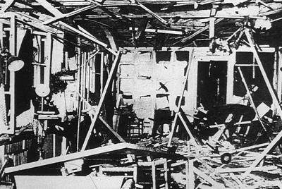 随着一声巨响,会议室被炸毁,房顶倒塌,墙皮剥落,窗框横飞,橡木桌被掀到了空中。正在会议室的24人当中,有4人当即身亡,3人重伤,而希特勒仅烧伤了大腿,烧焦了头发,震坏了耳膜。