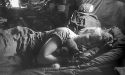 多国部队护士斯塔阿特搂着玩具熊睡着了