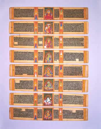 『梵文贝叶经』是古印度佛教徒用铁笔写在『贝多罗』树叶(即贝叶)上的梵文经典,经文涉及佛教经典、古印度文学、法典等内容。早期的贝叶经写本由于印度宗教之争、战乱,气候炎热、潮湿等原因,几乎已失传。而传入西藏的『梵文贝叶经』则完整地保留下来。