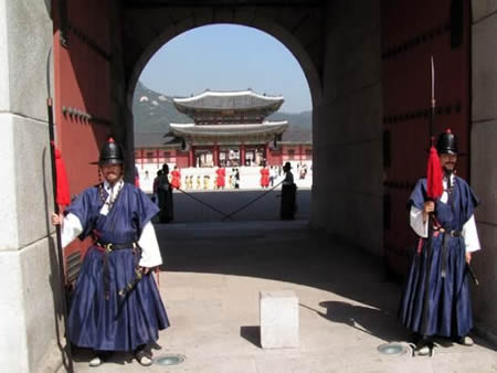1894年7月23日拂晓。黑暗中,一群日军准备用炸药爆破景福宫的一个门,结果没成功。于是他们爬上去用斧子砸,费了很大劲把门砸开,军队蜂拥而入。其它的门也被打开,日军与朝鲜卫兵经过三个小时左右的枪战后控制了王宫。这时天已大亮。