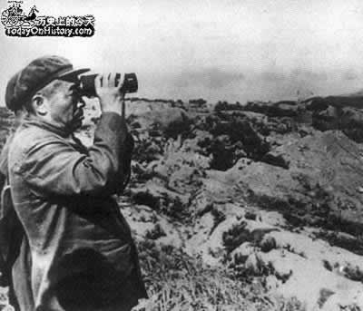 中国人民志愿军司令员彭德怀在朝鲜前线视察阵地