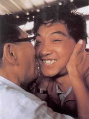 中华全国体育总会副主席黄中祝贺射击运动员许海峰夺得本届奥运会第1枚金牌,打破中国运动员奥运会金牌『零』的纪录