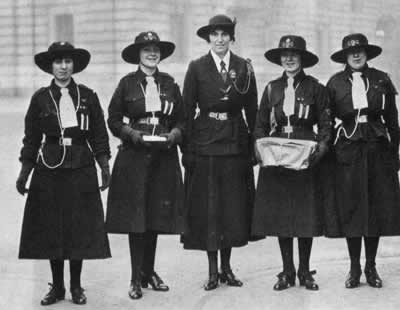 英国女童子军总队长巴登-鲍威尔女士(中)和她的部下在女童子军成立数年后的合影