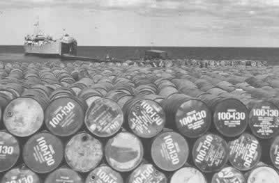 一桶桶航空燃料准备好给海军陆战队第一师航空部队使用