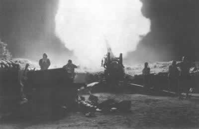 战争的最后几星期里,美军的一门榴弹炮还在开火