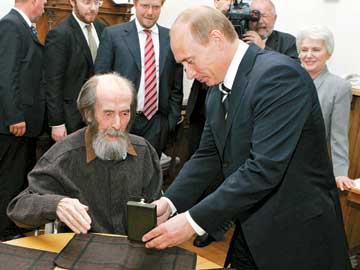 2007年,俄罗斯总统普京向索尔仁尼琴颁发人文领域杰出成就奖