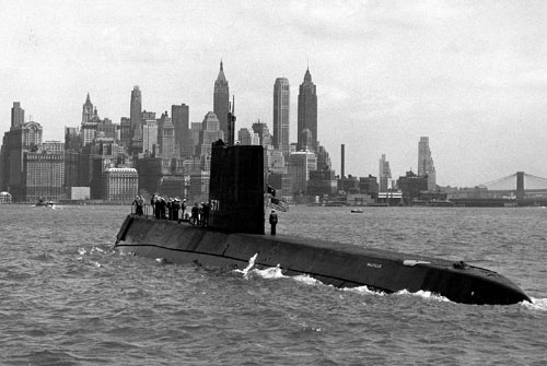 l954年1月21日,人类第一艘核动力潜艇"鹦鹉螺"号在上万名观众的欢呼声中下水。经过努力,"鹦鹉螺"号在这年底全部竣工。从理论上讲,它可以以最大航速在水下连续航行50天、航程3万海里而无需添加任何燃料。艇上还装备了自导鱼雷。