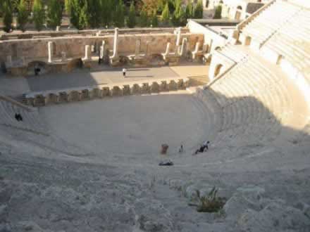 安曼古罗马剧场座落于安曼城堡山脚下的老城区,建于公元2世纪,整个建筑依山而卧,设计风格与约旦杰拉什的古罗马剧场极其相似。剧场呈圆形,可容纳6000人,建造者在修建过程中充分利用了声学原理,不论坐在剧场何处,舞台上歌唱、朗诵、讲演的声音均可清楚地听到。站在剧场中间讲话,可听见自己的声音在头顶上回荡。剧场旁还有『民间文物馆』和『民间传统博物馆』。