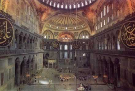 圣索菲亚大教堂,仰望圆顶,上面有写着『穆罕默德』的阿拉伯文金字大圆盘,精致的绘画技艺。