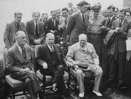 第一次魁北克会议中的罗斯福、加拿大总理麦肯齐·金及丘吉尔