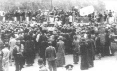 抗敌剧团在武汉江汉关前演出1938年8月11日,抗敌演剧队在武汉成立,这是10个革命戏剧团体的总称。该队以上海救亡演剧队为基础,与其他进步戏剧团体改编而成,共分10个队,每队30人,经过短期军事训练后,分赴各战区