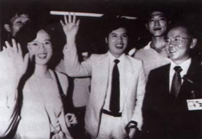 台湾当局的反共之火似消了点,实施了40多年的动员戡乱时期了结了,而为采访中国红十字会总会长赴台看望18 位大陆渔民,新华社记者范丽青和中新社记者郭伟锋成为大陆首次登上台岛的记者。一个自然而然的台阶。